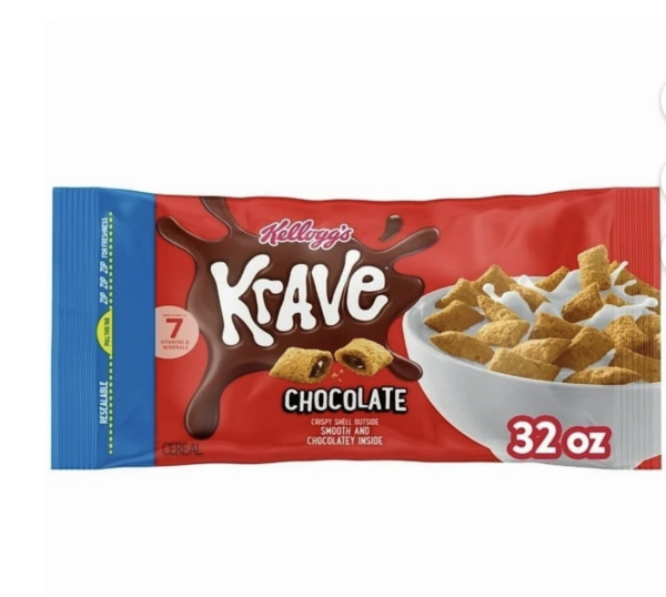 Crafted for chocovores, Kellogg's Krave Chocolate breakfast cereal is a distinctly delicious combo of crunchy multigrain cereal shells and chocolate-flavored filling. A good source of seven vitamins and minerals, Krave Chocolate cereal is a yummy way to start the day. Not just for breakfast, Krave is a tasty addition to any meal or snack. Enjoy as a well-deserved snack at the office or take along as an afternoon pick-me-up; Pack some in a plastic bag for a school snack or for busy, on-the-go moments. Enjoy a post-workout treat or indulge in a late-night bowlful of sweet, crunchy cereal and finish off with sweet cereal milk. Kellogg's Krave Chocolate breakfast cereal is perfect for chocolate-lovers who enjoy a crunchy, tasty, quick breakfast.